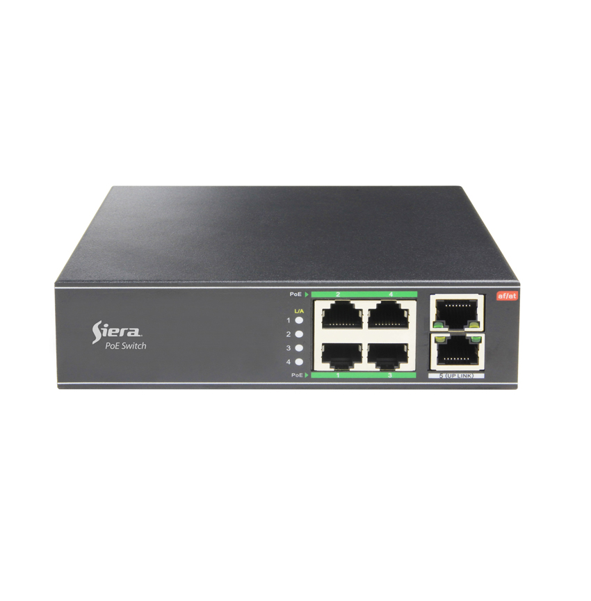 PoE + switch with range for 250mts, 4 10 / 100M ethernet ports with 2 10 / 100M Uplink